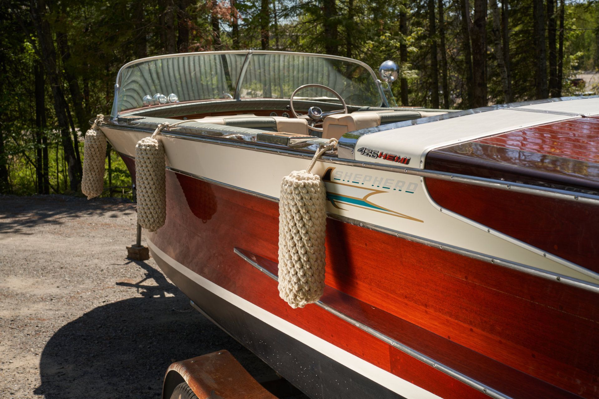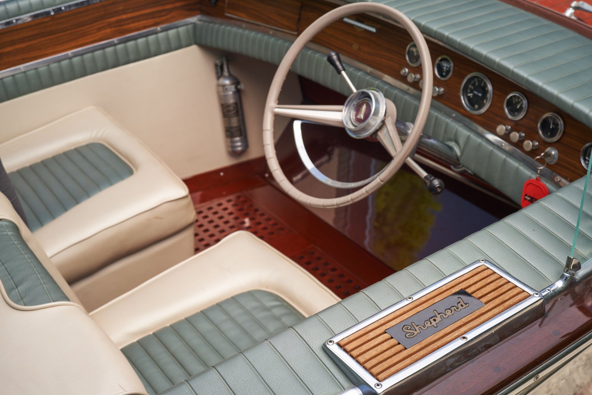 1966 22” Shepherd Runabout 'Magnum Force’, fully restored to original in 2013 with Chrysler Hemi 426. Overall condition is excellent. Includes 6 rope bumpers, extra windshield, mahogany floorboards, Shepherd pennants and air horns, and more.